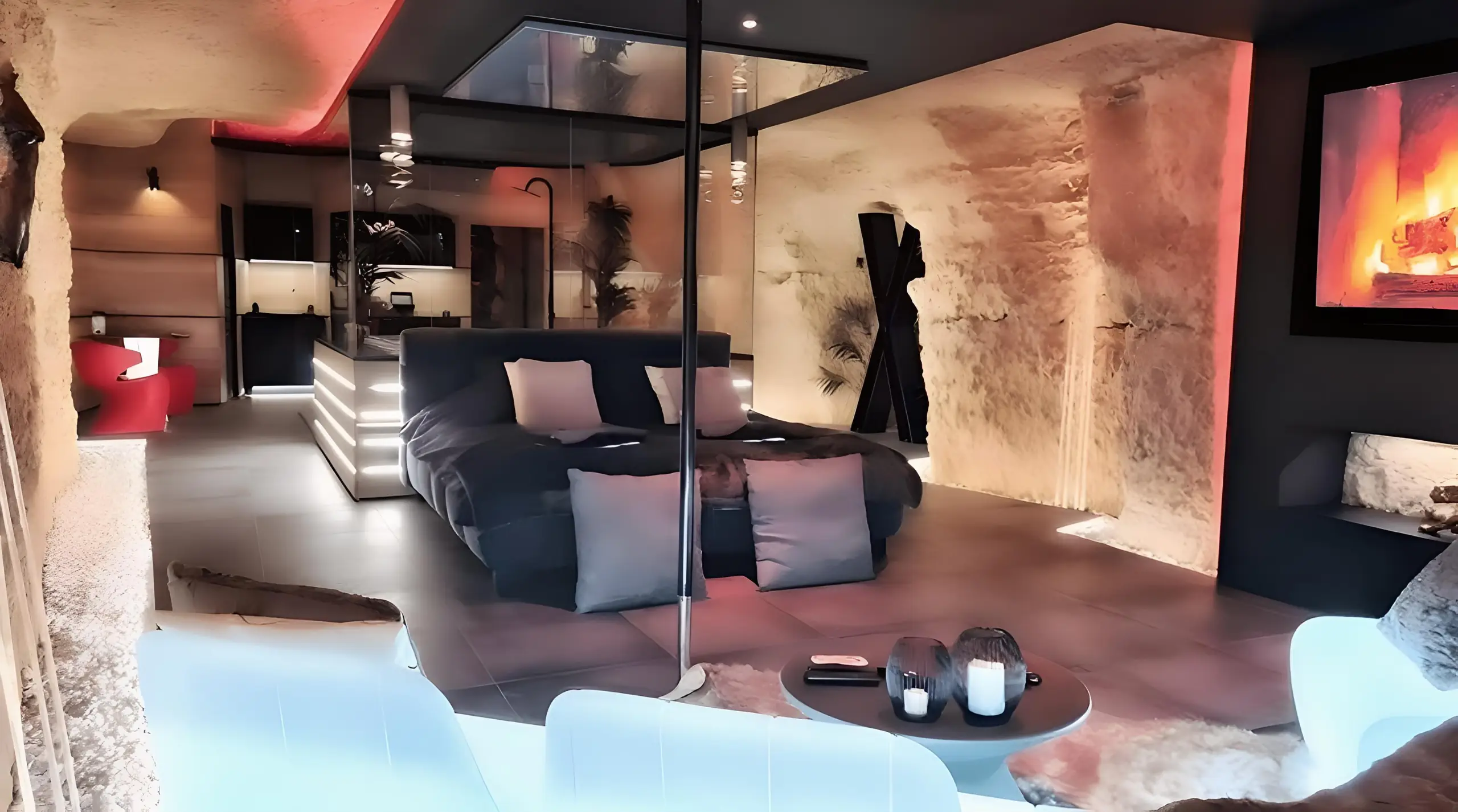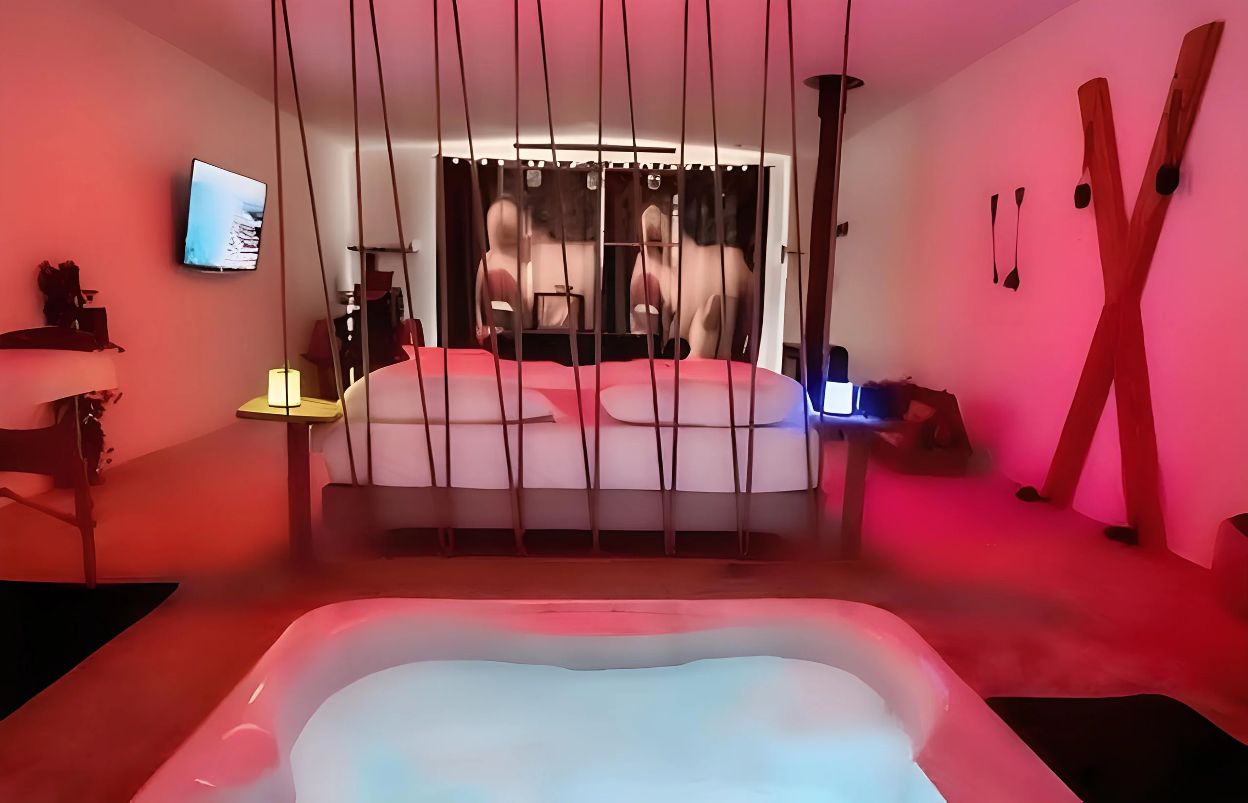 À 20 minutes d’Angers, découvrez un gîte romantique d’environ 90 m², pensé pour éveiller les sens et offrir une parenthèse hors du temps. La suite se compose d’une chambre coquine à la décoration raffinée, équipée d’un lit King Size avec literie confort, d’un miroir au plafond, d’un saufa tantra et d’un spa intérieur privatif.