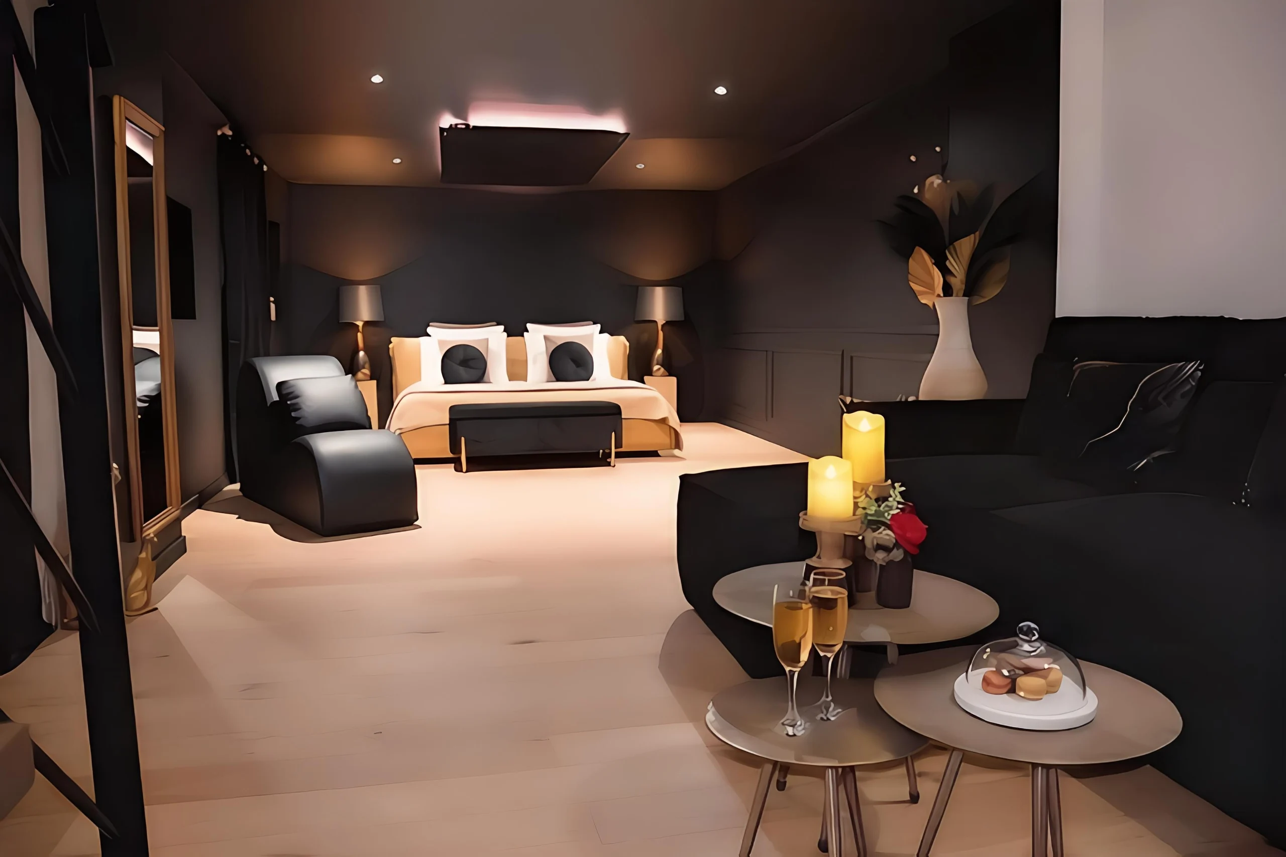 Offrez-vous une parenthèse hors du temps dans un cocon romantique de 60 m², pensé pour les couples. Dans une ambiance tamisée, le feu de cheminée, le lit king size, le jacuzzi privatif et le sofa tantra vous invitent à la complicité et à la sensualité. La douche XXL et le miroir au plafond ajoutent à l’expérience une touche délicate et audacieuse. Lieu discret et raffiné, classé 5 étoiles, Le Double L allie confort, élégance et intimité. Chaque détail célèbre le lien amoureux… et l’art de se retrouver.
